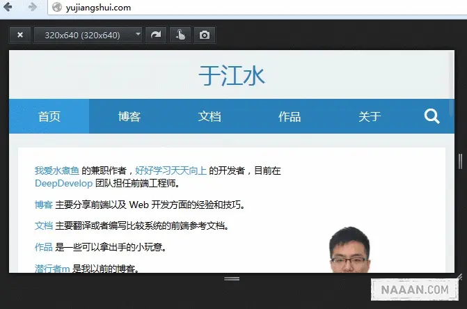 - 将开发者工具放在侧边,用来快速看到响应式变化效果。不过不要使用这个来调试,因为它的页面宽度增加了滚动条的宽度,而且分辨率一闪而过,不如 Firefox 的响应式设计视图更加准确。