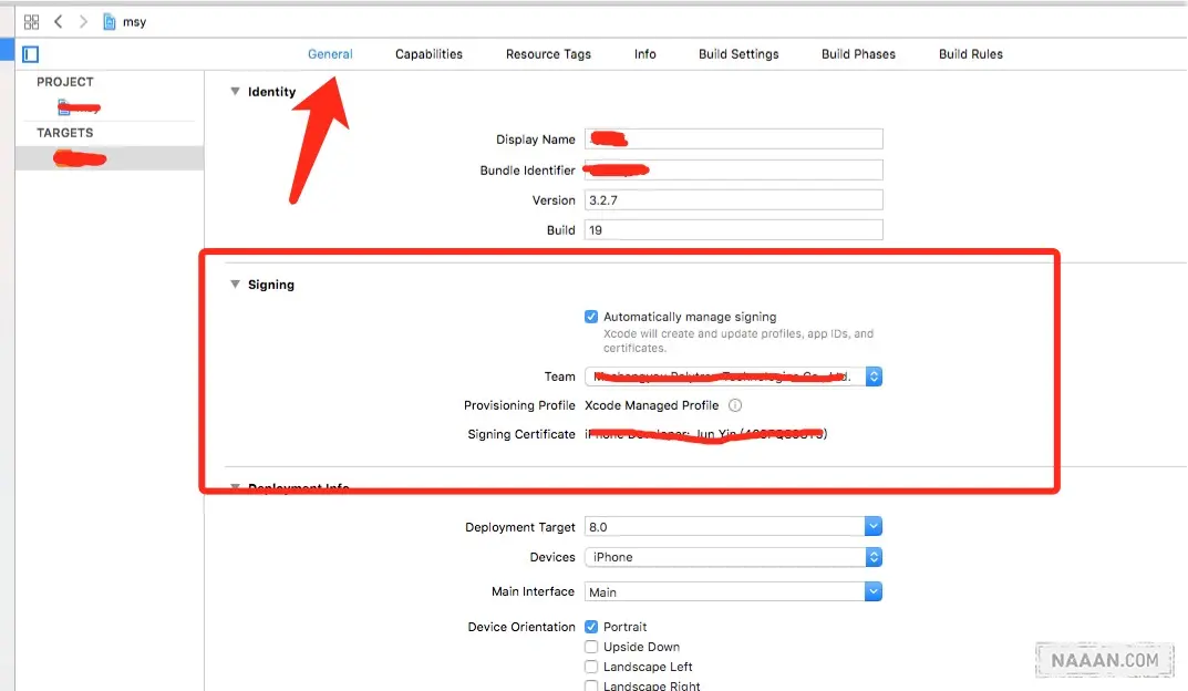 用 Xcode8 打开工程后,比较明显的就是下图了,这个是苹果的新特性,可以帮助我们自动管理证书。建议大家勾选这个 Automatically manage signing