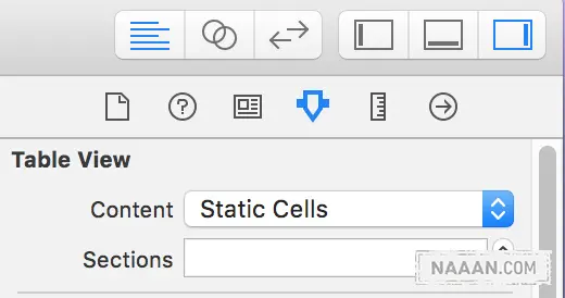 首先,拖一个 Table View Controller 到 main.storyboard 中,并选中 Table View 在右侧属性面板中将其设置为静态列表 Static Cells。