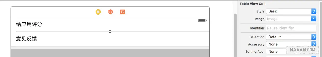为了演示方便这里就先创建一个 Section,其中有两行 Cell。两个 Cell 的 Style 都设置为 Basic,并将 Title 修改如下。