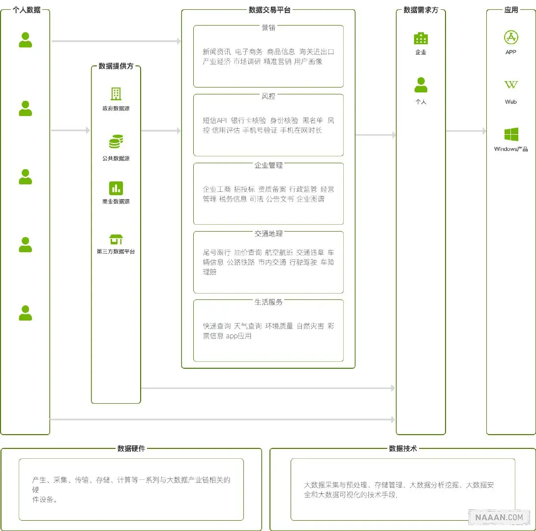 对于大数据应用,他们既是数据的需求方,也是数据的供给方。用户在使用 APP 的同时也会产生大量的用户数据,通过数据交易可以丰富更加完整的用户画像。