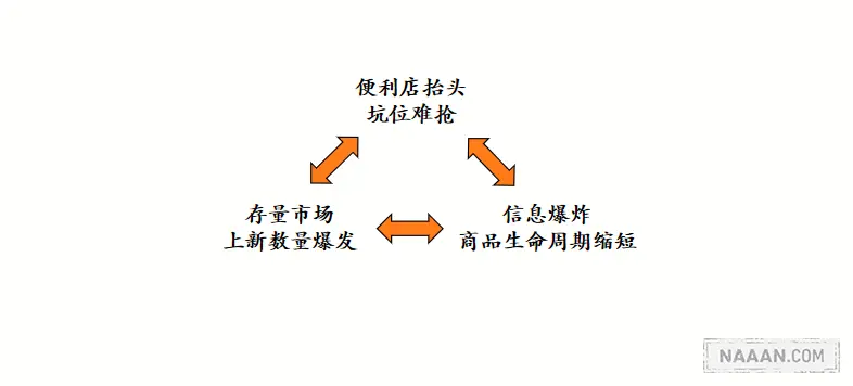 因此品牌方为了争夺便利店的坑位,不得不时刻以新材料、新口味、新包装、新工艺等角度推出新的产品。一方面吸引消费者的眼球,一方面和渠道方进行博弈。